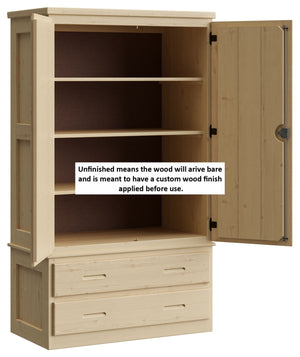 {"id":2170986659904,"title":"Armoire, Shelf","handle":"armoire-shelf","description":"\u003cdiv class=\"so-accordion-wrapper\"\u003e\n\u003cdiv class=\"so-tab\" style=\"text-align: start;\"\u003e\n\u003cp\u003eFull width shelves plus locking doors.\u003cbr\u003eOur solid wood drawer boxes feature \u003ca title=\"Drawer detail\" href=\"https:\/\/cdn.shopify.com\/s\/files\/1\/0128\/7661\/1648\/files\/Drawer_detail.jpg?v=1690310119\" target=\"_blank\"\u003edovetailed\u003c\/a\u003e corner joints and roll easily on steel and nylon drawer runners. Drawer bottoms are secured in a groove on all 4 sides - the bottom will never fall out of your CD Furniture drawer.\u003cbr data-mce-fragment=\"1\"\u003eThis unit is shipped as 2 pieces for easy installation.\u003cbr\u003e\u003c\/p\u003e\n\u003cp\u003e \u003cimg alt=\"SHELF ARMOIRE\" src=\"https:\/\/cdn.shopify.com\/s\/files\/1\/0128\/7661\/1648\/files\/A7016a-armoire-shelf-interior-classic-finish_002e07b5-62db-4af5-81d6-a98521351e07_160x160.jpg?v=1716818333\" style=\"float: none;\"\u003e\u003c\/p\u003e\n\u003c\/div\u003e\n\u003cdiv class=\"so-tab\"\u003e\n\u003cinput name=\"tabs\" type=\"checkbox\" id=\"so-tab-1\"\u003e \u003clabel for=\"so-tab-1\"\u003eDimensions\u003c\/label\u003e\n\u003cdiv class=\"so-tab-content\"\u003e\n\u003cp\u003e\u003cstrong\u003eOverall:\u003c\/strong\u003e 42\" wide x 22\" deep x 73\" high. SKU: 7016A \u003cspan style=\"color: #ffffff;\"\u003e7016\u003c\/span\u003e\u003cbr\u003e\u003cstrong\u003eShelf openings: \u003c\/strong\u003e38\" wide x 19 1\/2\" deep x 11 1\/4\" high\u003cbr\u003e\u003cstrong\u003eDrawer openings:\u003c\/strong\u003e 35 1\/4\" wide x 16 1\/2\" deep x 6\" high\u003c\/p\u003e\n\u003c\/div\u003e\n\u003c\/div\u003e\n\u003cdiv class=\"so-tab\"\u003e\n\u003cinput name=\"tabs\" type=\"checkbox\" id=\"so-tab-2\"\u003e \u003clabel for=\"so-tab-2\"\u003eMaterials\u003c\/label\u003e\n\u003cdiv class=\"so-tab-content\"\u003e\n\u003cp\u003e\u003cstrong\u003eCase:\u003c\/strong\u003e Solid Southern Yellow Pine\u003cbr\u003e\u003cstrong\u003eTop:\u003c\/strong\u003e Solid Southern Yellow Pine surrounding plywood panel. \u003cbr\u003e\u003cstrong\u003eDoors:\u003c\/strong\u003e Solid Southern Yellow Pine\u003cbr\u003e\u003cstrong\u003eBack:\u003c\/strong\u003e Plywood\u003cbr\u003e\u003cstrong\u003eDrawer bottoms:\u003c\/strong\u003e Plywood\u003c\/p\u003e\n\u003cp\u003eMinor assembly required. Click for \u003ca href=\"https:\/\/cdn.shopify.com\/s\/files\/1\/0128\/7661\/1648\/files\/Armoire_327a02ce-9d31-4a16-910d-7d3acb0ae628.pdf?v=1691695050\" title=\"Assembly instructions\" target=\"_blank\"\u003eassembly instructions.\u003c\/a\u003e\u003c\/p\u003e\n\u003c\/div\u003e\n\u003c\/div\u003e\n\u003cdiv class=\"so-tab\"\u003e\n\u003cinput name=\"tabs\" type=\"checkbox\" id=\"so-tab-3\"\u003e \u003clabel for=\"so-tab-3\"\u003eWarranty\u003cbr\u003e\u003c\/label\u003e\n\u003cdiv class=\"so-tab-content\"\u003e\n\u003cp\u003eWe guarantee that our furniture will have gaps and cracks, but will not fall apart for as long as you own it! Shipping charges for replacement parts are included during your first year of ownership. Foam, fabric and mechanisms (non-wood parts) are guaranteed against faulty workmanship for a period of one year from the date of delivery. As most mills do not guarantee their fabric we will not be held responsible for wear or fading of our products’ fabric. This guarantee is limited to the original purchaser \u0026amp; also limited to furniture used indoors under normal residential conditions only. Your invoice is your proof of purchase. \u003ca href=\"\/pages\/about-us#guarantee\" title=\"Commercial warranty\" target=\"_blank\"\u003eView commercial warranty terms\u003c\/a\u003e\u003ca title=\"Commercial warranty\" href=\"\/pages\/about-us#guarantee\" target=\"_blank\"\u003e.\u003c\/a\u003e\u003c\/p\u003e\n\u003c\/div\u003e\n\u003cdiv class=\"so-tab\"\u003e\n\u003cinput id=\"so-tab-4\" type=\"checkbox\" name=\"tabs\"\u003e \u003clabel for=\"so-tab-4\"\u003eShipping\u003c\/label\u003e\n\u003cdiv class=\"so-tab-content\"\u003e\n\u003cp\u003eThis item \u003cspan data-mce-fragment=\"1\"\u003equalifies\u003c\/span\u003e for \u003cstrong\u003efree\u003c\/strong\u003e shipping! \u003ca href=\"https:\/\/cratedesignsfurniture.com\/policies\/shipping-policy\" title=\"Shipping policy\" target=\"_blank\"\u003eView our shipping rates and policies\u003c\/a\u003e\u003ca href=\"https:\/\/cratedesignsfurniture.com\/policies\/shipping-policy\" title=\"Shipping policy\" target=\"_blank\"\u003e.\u003c\/a\u003e\u003cbr\u003eShipping is unavailable to Newfoundland \u0026amp; Labrador, Northwest Territories, Nunavut, the Yukon and outside of Canada. If you require shipping in any of these areas use the \u003ca rel=\"noopener\" title=\"Store Locator\" href=\"https:\/\/cratedesignsfurniture.com\/pages\/store-locator\" target=\"_blank\"\u003eStore Locator\u003c\/a\u003e to find the closest dealer that services your area.\u003cbr\u003e\u003c\/p\u003e\n\u003c\/div\u003e\n\u003c\/div\u003e\n\u003c\/div\u003e\n\u003c\/div\u003e","published_at":"2019-01-04T21:51:47-05:00","created_at":"2019-01-04T21:52:36-05:00","vendor":"Crate Designs Furniture","type":"Furniture","tags":["Category_Default Category\/Furniture","Category_Default Category\/Furniture\/Bedroom","Category_Default Category\/Furniture\/Bedroom\/Armoires"],"price":217400,"price_min":217400,"price_max":250000,"available":true,"price_varies":true,"compare_at_price":null,"compare_at_price_min":0,"compare_at_price_max":0,"compare_at_price_varies":false,"variants":[{"id":20548857692224,"title":"Classic","option1":"Classic","option2":null,"option3":null,"sku":"A7016A","requires_shipping":true,"taxable":true,"featured_image":{"id":39544695783662,"product_id":2170986659904,"position":1,"created_at":"2023-09-27T11:24:02-04:00","updated_at":"2023-09-27T11:24:06-04:00","alt":null,"width":1761,"height":1761,"src":"\/\/cratedesignsfurniture.com\/cdn\/shop\/files\/A7016a-armoire-s