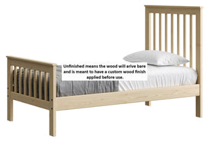 Mission Bed. 44in Headboard, 29in Footboard. Sizes up to Queen