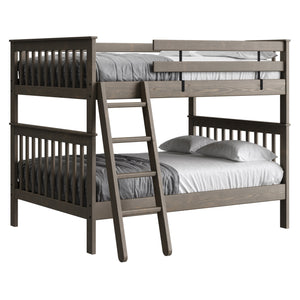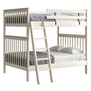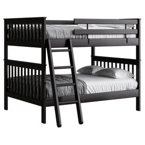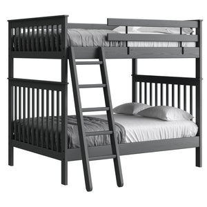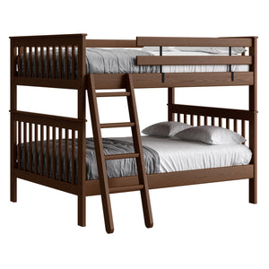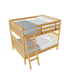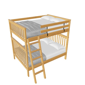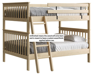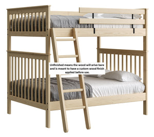 {"id":2170407518272,"title":"Mission Bunk Bed. Full Over Full.","handle":"mission-bunk-bed-full-over-full","description":"\u003cdiv class=\"so-accordion-wrapper\"\u003eThe sturdy bed ends utilize \u003ca title=\"Mortise and tenon\" href=\"https:\/\/cdn.shopify.com\/s\/files\/1\/0128\/7661\/1648\/files\/Mortise_Tenon.jpg?v=1690230558\" target=\"_blank\"\u003emortise and tenon\u003c\/a\u003e construction and are all solid wood. \n\u003cdiv style=\"text-align: start;\" class=\"so-tab\"\u003e\n\u003cp\u003eMission bunk beds include a removable ladder that can be used on the front or ends of the bed. A full length rear guardrail and a removable front guardrail are included. Options include extra-long for big kids and a taller version to allow 8” more headroom under the bed for comfortable seating. Can be separated into 2 beds or \u003ca rel=\"noopener\" title=\"Loft bed\" href=\"https:\/\/cratedesignsfurniture.com\/blogs\/blog\/how-to-turn-your-bunk-bed-into-a-loft-bed\" target=\"_blank\"\u003eset up as a loft bed.\u003c\/a\u003e\u003ca title=\"Bunk bed height\" href=\"https:\/\/cdn.shopify.com\/s\/files\/1\/0128\/7661\/1648\/files\/Bunk-height.jpg?600\" target=\"_blank\"\u003e\u003cimg style=\"margin-top: 10px; margin-bottom: 10px; float: start;\" src=\"https:\/\/cdn.shopify.com\/s\/files\/1\/0128\/7661\/1648\/files\/Bunk-height.jpg?600\" alt=\"Bunk bed height\"\u003e\u003c\/a\u003e\u003c\/p\u003e\n\u003cp\u003eThe top of an 8” thick mattress will be 21\" off the floor on the lower bed and 57” off the floor on the upper bed. (65” on Tall models). \u003cbr\u003e\u003cbr\u003e\u003cspan\u003eAdd optional drawers or a trundle bed for maximum use of your floor space.\u003c\/span\u003e\u003cspan\u003e \u003c\/span\u003e\u003ca title=\"Underbed storage\" href=\"https:\/\/cratedesignsfurniture.com\/collections\/under-bed-storage\" target=\"_blank\"\u003eView underbed options\u003c\/a\u003e\u003cspan\u003e.\u003c\/span\u003e\u003c\/p\u003e\n\u003cp\u003e\u003cspan\u003eReady for mattresses, no foundation required. \u003c\/span\u003e\u003ca title=\"Mattresses\" href=\"https:\/\/cratedesignsfurniture.com\/collections\/mattresses\" target=\"_blank\"\u003eView mattress options\u003c\/a\u003e\u003cspan\u003e. \u003c\/span\u003e\u003c\/p\u003e\n\u003c\/div\u003e\n\u003cdiv class=\"so-tab\"\u003e\n\u003cinput name=\"tabs\" type=\"checkbox\" id=\"so-tab-1\"\u003e \u003clabel for=\"so-tab-1\"\u003eDimensions\u003c\/label\u003e\n\u003cdiv class=\"so-tab-content\"\u003e\n\u003cp\u003e\u003cstrong\u003eFull: \u003c\/strong\u003e58\" wide x 79\" deep x 65\" high. SKU: 4707 (Tall - 73\" high. SKU: 4707T)\u003cbr\u003e\u003cstrong\u003eFull extra-long: \u003c\/strong\u003e58\" wide x 84\" deep x 65\" high. SKU: 4707Q (Tall - 73\" high. SKU: 4707TQ)\u003cbr\u003eThe ladder will extend 18\" from the front of the regular height bunk bed and 20\" from the front of the tall model.\u003cbr\u003e\u003c\/p\u003e\n\u003c\/div\u003e\n\u003c\/div\u003e\n\u003cdiv class=\"so-tab\"\u003e\n\u003cinput name=\"tabs\" type=\"checkbox\" id=\"so-tab-2\"\u003e \u003clabel for=\"so-tab-2\"\u003eMaterials\u003c\/label\u003e\n\u003cdiv class=\"so-tab-content\"\u003e\n\u003cp\u003e\u003cstrong\u003eFrame:\u003c\/strong\u003e Solid Southern Yellow Pine\u003cbr\u003e\u003cstrong\u003eMattress base:\u003c\/strong\u003e Solid Southern Yellow Pine slats (9) Foundation is not required\u003cbr\u003e\u003cstrong data-mce-fragment=\"1\"\u003eGuardrail \u0026amp; Ladder brackets:\u003c\/strong\u003e\u003cspan data-mce-fragment=\"1\"\u003e Powder coated steel\u003c\/span\u003e\u003cbr\u003e\u003c\/p\u003e\n\u003cp\u003eAssembly required. Click for \u003ca rel=\"noopener noreferrer\" href=\"https:\/\/cdn.shopify.com\/s\/files\/1\/0128\/7661\/1648\/files\/Mission_Bunk_Bed.pdf?v=1706197102\" title=\"Assembly instructions\" target=\"_blank\"\u003eAssembly Instructions\u003c\/a\u003e\u003c\/p\u003e\n\u003c\/div\u003e\n\u003c\/div\u003e\n\u003cdiv class=\"so-tab\"\u003e\n\u003cinput name=\"tabs\" type=\"checkbox\" id=\"so-tab-3\"\u003e \u003clabel for=\"so-tab-3\"\u003eWarranty\u003cbr\u003e\u003c\/label\u003e\n\u003cdiv class=\"so-tab-content\"\u003e\n\u003cp\u003eWe guarantee that our furniture will have gaps and cracks, but will not fall apart for as long as you own it! Shipping charges for replacement parts are included during your first year of ownership. Foam, fabric and mechanisms (non-wood parts) are guaranteed against faulty workmanship for a period of one year from the date of delivery. As most mills do not guarantee their fabric we will not be held responsible for wear or fading of our products’ fabric. This guarantee is limited to the original purchaser \u0026amp; also limited to furniture used indoors under normal residential conditions only. Your invoice is your proof of purchase. \u003ca title=\"Commercial warranty\" href=\"\/pages\/about-us#guarantee\" target=\"_blank\"\u003eView commercial warranty terms.\u003c\/a\u003e\u003c\/p\u003e\n\u003c\/div\u003e\n\u003cdiv class=\"so-tab\"\u003e\n\u003cinput id=\"so-tab-4\" type=\"checkbox\" name=\"tabs\"\u003e \u003clabel for=\"so-tab-4\"\u003eShipping\u003c\/label\u003e\n\u003cdiv class=\"so-tab-content\"\u003e\n\u003cp\u003eThis item \u003cspan data-mce-fragment=\"1\"\u003equalifies\u003c\/span\u003e for \u003cstrong\u003efree\u003c\/strong\u003e shipping! \u003ca href=\"https:\/\/cratedesignsfurniture.com\/policies\/shipping-policy\" title=\"Shipping policy\" target=\"_blank\"\u003eView our shipping rates and policies.\u003c\/a\u003e\u003cbr\u003eShipping is unavailable to Newfoundland \u0026amp; Labrador, Northwest Territories, Nunavut, the Yukon and outside of Canada. If you require shipping in any of these areas use the \u003ca href=\"https:\/\/cratedesignsfurniture.com\/pages\/store-locator\" title=\"Store Locator\" rel=\"noopener\" target=\"_blank\"\u003eStore Locator\u003c\/a\u003e to find the closest dealer that services your area.\u003cbr\u003e\u003c\/p\u003e\n\u003c\/div\u0