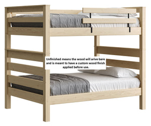 {"id":2170461552704,"title":"TimberFrame Bunk Bed. Full Over Full.","handle":"timberframe-bunk-bed-full-over-full","description":"\u003cdiv class=\"so-accordion-wrapper\"\u003e\n\u003cdiv class=\"so-tab\" style=\"text-align: start;\"\u003e\n\u003cp\u003eTimberFrame bunk beds feature massive corner posts with thick ladder rungs in between using \u003ca href=\"https:\/\/cdn.shopify.com\/s\/files\/1\/0128\/7661\/1648\/files\/Mortise_Tenon.jpg?v=1690230558\" title=\"Mortise and tenon\" target=\"_blank\"\u003emortise and tenon\u003c\/a\u003e construction. A removable guardrail is included on the front with a full-length guardrail at the rear of the upper bed. Can be separated into 2 beds.\u003cbr\u003e\u003cspan data-mce-fragment=\"1\"\u003e\u003cbr\u003eView this model with a removable ladder - \u003c\/span\u003e\u003ca href=\"https:\/\/cratedesignsfurniture.com\/collections\/timberframe-bunk-beds\/products\/timberframe-bunk-bed-twin-over-twin-with-ladder\" title=\"Full over full with ladder.\" data-mce-fragment=\"1\" target=\"_blank\" data-mce-href=\"https:\/\/cratedesignsfurniture.com\/collections\/timberframe-bunk-beds\/products\/timberframe-bunk-bed-twin-over-twin-with-ladder\"\u003e44907H\u003c\/a\u003e\u003cspan data-mce-fragment=\"1\"\u003e.\u003c\/span\u003e\u003cbr\u003e\u003cspan\u003e\u003cbr\u003eAdd optional drawers or a trundle bed for maximum use of your floor space.\u003c\/span\u003e\u003cspan\u003e \u003c\/span\u003e\u003ca href=\"https:\/\/cratedesignsfurniture.com\/collections\/under-bed-storage\" title=\"Underbed storage\" target=\"_blank\"\u003eView underbed options\u003c\/a\u003e\u003cspan\u003e.\u003c\/span\u003e\u003c\/p\u003e\n\u003cp\u003e\u003cspan\u003eReady for a mattress, no foundation required. \u003c\/span\u003eThe top of an 8” thick mattress on the lower bed will be 21” and on the upper bed will be 64” off the floor. View \u003ca title=\"Mattresses\" href=\"\/collections\/mattresses\" target=\"_blank\"\u003emattress options\u003c\/a\u003e. You can also add a model \u003ca href=\"https:\/\/cratedesignsfurniture.com\/collections\/timberframe-bunk-beds\/products\/bunk-bed-ladder-4700-4710\" title=\"Ladder\" target=\"_blank\"\u003e4710\u003c\/a\u003e ladder.\u003c\/p\u003e\n\u003c\/div\u003e\n\u003cdiv class=\"so-tab\"\u003e\n\u003cinput id=\"so-tab-1\" type=\"checkbox\" name=\"tabs\"\u003e \u003clabel for=\"so-tab-1\"\u003eDimensions\u003c\/label\u003e\n\u003cdiv class=\"so-tab-content\"\u003e\n\u003cp\u003e\u003cstrong\u003eFull, regular:\u003c\/strong\u003e 59\" wide x 82\" deep x 72\" high. SKU: 44907\u003cbr\u003e\u003cstrong\u003eFull, extra-long:\u003c\/strong\u003e 59\" wide x 87\" deep x 72\" high. SKU: 44907Q\u003c\/p\u003e\n\u003c\/div\u003e\n\u003c\/div\u003e\n\u003cdiv class=\"so-tab\"\u003e\n\u003cinput id=\"so-tab-2\" type=\"checkbox\" name=\"tabs\"\u003e \u003clabel for=\"so-tab-2\"\u003eMaterials\u003c\/label\u003e\n\u003cdiv class=\"so-tab-content\"\u003e\n\u003cp\u003e\u003cstrong\u003eFrame:\u003c\/strong\u003e Solid Southern Yellow Pine\u003cbr\u003e\u003cstrong\u003eMattress base:\u003c\/strong\u003e Solid Southern Yellow Pine slats (9) Foundation is not required\u003cbr\u003e\u003cstrong data-mce-fragment=\"1\"\u003eGuardrail brackets:\u003c\/strong\u003e\u003cspan data-mce-fragment=\"1\"\u003e Powder coated steel\u003c\/span\u003e\u003cbr\u003e\u003c\/p\u003e\n\u003cp\u003eAssembly required. Click for \u003ca title=\"Assembly instructions\" href=\"https:\/\/cdn.shopify.com\/s\/files\/1\/0128\/7661\/1648\/files\/TimberFrame_bunk_bed.pdf?v=1706204785\" rel=\"noopener noreferrer\" target=\"_blank\"\u003eAssembly Instructions\u003c\/a\u003e\u003c\/p\u003e\n\u003c\/div\u003e\n\u003c\/div\u003e\n\u003cdiv class=\"so-tab\"\u003e\n\u003cinput id=\"so-tab-3\" type=\"checkbox\" name=\"tabs\"\u003e \u003clabel for=\"so-tab-3\"\u003eWarranty\u003cbr\u003e\u003c\/label\u003e\n\u003cdiv class=\"so-tab-content\"\u003e\n\u003cp\u003eWe guarantee that our furniture will have gaps and cracks, but will not fall apart for as long as you own it! Shipping charges for replacement parts are included during your first year of ownership. Foam, fabric and mechanisms (non-wood parts) are guaranteed against faulty workmanship for a period of one year from the date of delivery. As most mills do not guarantee their fabric we will not be held responsible for wear or fading of our products’ fabric. This guarantee is limited to the original purchaser \u0026amp; also limited to furniture used indoors under normal residential conditions only. Your invoice is your proof of purchase. \u003ca href=\"\/pages\/about-us#guarantee\" title=\"Commercial warranty\" target=\"_blank\"\u003eView commercial warranty terms.\u003c\/a\u003e\u003c\/p\u003e\n\u003c\/div\u003e\n\u003cdiv class=\"so-tab\"\u003e\n\u003cinput name=\"tabs\" type=\"checkbox\" id=\"so-tab-4\"\u003e \u003clabel for=\"so-tab-4\"\u003eShipping\u003c\/label\u003e\n\u003cdiv class=\"so-tab-content\"\u003e\n\u003cp\u003eThis item \u003cspan data-mce-fragment=\"1\"\u003equalifies\u003c\/span\u003e for \u003cstrong\u003efree\u003c\/strong\u003e shipping! \u003ca title=\"Shipping policy\" href=\"https:\/\/cratedesignsfurniture.com\/policies\/shipping-policy\" target=\"_blank\"\u003eView our shipping rates and policies.\u003c\/a\u003e\u003cbr\u003eShipping is unavailable to Newfoundland \u0026amp; Labrador, Northwest Territories, Nunavut, the Yukon and outside of Canada. If you require shipping in any of these areas use the \u003ca rel=\"noopener\" title=\"Store Locator\" href=\"https:\/\/cratedesignsfurniture.com\/pages\/store-locator\" target=\"_blank\"\u003eStore Locator\u003c\/a\u003e to find the closest dealer that services your area.\u003cbr\u003e\u003c\/p\u003e\n\u003c\/div\u003e\n\u003c\/div\u003e\n\u003c\/div\u003e\n\u003c\/div\u003e","published_at":"2019-01-04T20:58:52-05:00","created_at":"2019-01-04T20:59:38-05:00","vendor":"Crate Designs Furniture","type":"Bunk beds","tags":["Bed size_Full extra-long","Bed 