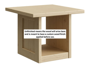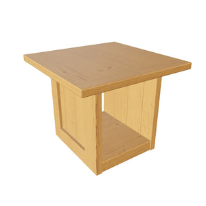 A generous sized end table that will hold much more than a lamp. You will also appreciate the bottom shelf for extra storage to help keep your room tidy. Consider adding a lacquer finish on the top for increased moisture resistance and easier cleanup of spills.