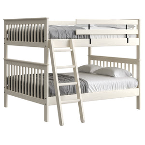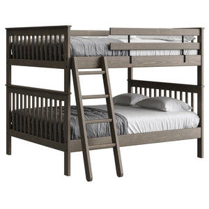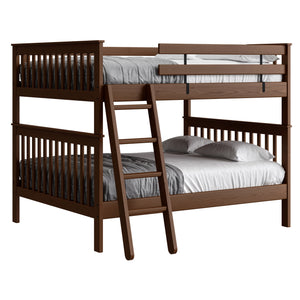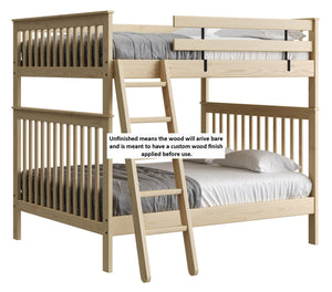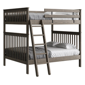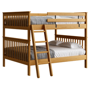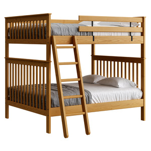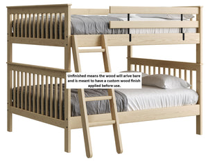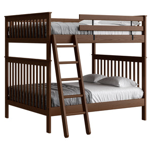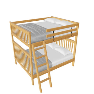 {"id":2170399621184,"title":"Mission Bunk Bed. Queen Over Queen.","handle":"mission-bunk-bed-queen-over-queen","description":"\u003cdiv class=\"so-accordion-wrapper\"\u003e\n\u003cdiv class=\"so-tab\" style=\"text-align: start;\"\u003e\n\u003cp\u003e\u003cspan data-mce-fragment=\"1\"\u003eMission bunk beds include a removable ladder that can be used on the front or ends of the bed. \u003c\/span\u003eA full length rear guardrail and a removable front guardrail are included. The sturdy bed ends utilize \u003ca href=\"https:\/\/cdn.shopify.com\/s\/files\/1\/0128\/7661\/1648\/files\/Mortise_Tenon.jpg?v=1690230558\" title=\"Mortise and tenon\" target=\"_blank\"\u003emortise and tenon\u003c\/a\u003e construction and are all solid wood. \u003cbr\u003eOptions include extra-long for big kids and a taller version to allow 8” more headroom under the bed for comfortable seating. Can be separated into 2 beds or \u003ca rel=\"noopener\" title=\"Loft bed\" href=\"https:\/\/cratedesignsfurniture.com\/blogs\/blog\/how-to-turn-your-bunk-bed-into-a-loft-bed\" target=\"_blank\"\u003eset up as a loft bed.\u003c\/a\u003e\u003ca href=\"https:\/\/cdn.shopify.com\/s\/files\/1\/0128\/7661\/1648\/files\/Bunk-height.jpg?600\" title=\"Bunk bed height\" target=\"_blank\"\u003e\u003cimg alt=\"Bunk bed height\" src=\"https:\/\/cdn.shopify.com\/s\/files\/1\/0128\/7661\/1648\/files\/Bunk-height.jpg?600\" style=\"margin-top: 10px; margin-bottom: 10px; float: start;\"\u003e\u003c\/a\u003e\u003c\/p\u003e\n\u003cp\u003eThe top of an 8” thick mattress will be 21\" off the floor on the lower bed and 57” off the floor on the upper bed. (65” on Tall models). \u003cbr\u003e\u003cbr\u003e\u003cspan\u003eAdd optional drawers or a trundle bed for maximum use of your floor space.\u003c\/span\u003e\u003cspan\u003e \u003c\/span\u003e\u003ca href=\"https:\/\/cratedesignsfurniture.com\/collections\/under-bed-storage\" title=\"Underbed storage\" target=\"_blank\"\u003eView underbed options\u003c\/a\u003e\u003cspan\u003e.\u003c\/span\u003e\u003c\/p\u003e\n\u003cp\u003e\u003cspan\u003eReady for mattresses, no foundation required. \u003c\/span\u003e\u003ca href=\"https:\/\/cratedesignsfurniture.com\/collections\/mattresses\" title=\"Mattresses\" target=\"_blank\"\u003eView mattress options\u003c\/a\u003e\u003cspan\u003e. \u003c\/span\u003e\u003c\/p\u003e\n\u003c\/div\u003e\n\u003cdiv class=\"so-tab\"\u003e\n\u003cinput id=\"so-tab-1\" type=\"checkbox\" name=\"tabs\"\u003e \u003clabel for=\"so-tab-1\"\u003eDimensions\u003c\/label\u003e\n\u003cdiv class=\"so-tab-content\"\u003e\n\u003cp\u003e\u003cstrong\u003eQueen:\u003c\/strong\u003e 64\" wide x 84\" deep x 65\" high. SKU: 4708 (Tall - 73\" high. SKU: 4708T)\u003cbr\u003eThe ladder will extend 18\" from the front of the regular height bunk bed and 20\" from the front of the tall model.\u003cbr\u003e\u003c\/p\u003e\n\u003c\/div\u003e\n\u003c\/div\u003e\n\u003cdiv class=\"so-tab\"\u003e\n\u003cinput id=\"so-tab-2\" type=\"checkbox\" name=\"tabs\"\u003e \u003clabel for=\"so-tab-2\"\u003eMaterials\u003c\/label\u003e\n\u003cdiv class=\"so-tab-content\"\u003e\n\u003cp\u003e\u003cstrong\u003eFrame:\u003c\/strong\u003e Solid Southern Yellow Pine\u003cbr\u003e\u003cstrong\u003eMattress base:\u003c\/strong\u003e Solid Southern Yellow Pine slats (9) Foundation is not required\u003cbr\u003e\u003cstrong data-mce-fragment=\"1\"\u003eGuardrail \u0026amp; Ladder brackets:\u003c\/strong\u003e\u003cspan data-mce-fragment=\"1\"\u003e Powder coated steel\u003c\/span\u003e\u003cbr\u003e\u003c\/p\u003e\n\u003cp\u003eAssembly required. Click for \u003ca title=\"Assembly instructions\" href=\"https:\/\/cdn.shopify.com\/s\/files\/1\/0128\/7661\/1648\/files\/Mission_Bunk_Bed.pdf?v=1706197102\" rel=\"noopener noreferrer\" target=\"_blank\"\u003eAssembly Instructions\u003c\/a\u003e\u003c\/p\u003e\n\u003c\/div\u003e\n\u003c\/div\u003e\n\u003cdiv class=\"so-tab\"\u003e\n\u003cinput id=\"so-tab-3\" type=\"checkbox\" name=\"tabs\"\u003e \u003clabel for=\"so-tab-3\"\u003eWarranty\u003cbr\u003e\u003c\/label\u003e\n\u003cdiv class=\"so-tab-content\"\u003e\n\u003cp\u003eWe guarantee that our furniture will have gaps and cracks, but will not fall apart for as long as you own it! Shipping charges for replacement parts are included during your first year of ownership. Foam, fabric and mechanisms (non-wood parts) are guaranteed against faulty workmanship for a period of one year from the date of delivery. As most mills do not guarantee their fabric we will not be held responsible for wear or fading of our products’ fabric. This guarantee is limited to the original purchaser \u0026amp; also limited to furniture used indoors under normal residential conditions only. Your invoice is your proof of purchase. \u003ca href=\"\/pages\/about-us#guarantee\" title=\"Commercial warranty\" target=\"_blank\"\u003eView commercial warranty terms.\u003c\/a\u003e\u003c\/p\u003e\n\u003c\/div\u003e\n\u003cdiv class=\"so-tab\"\u003e\n\u003cinput id=\"so-tab-4\" type=\"checkbox\" name=\"tabs\"\u003e \u003clabel for=\"so-tab-4\"\u003eShipping\u003c\/label\u003e\n\u003cdiv class=\"so-tab-content\"\u003e\n\u003cp\u003eThis item \u003cspan data-mce-fragment=\"1\"\u003equalifies\u003c\/span\u003e for \u003cstrong\u003efree\u003c\/strong\u003e shipping! \u003ca href=\"https:\/\/cratedesignsfurniture.com\/policies\/shipping-policy\" title=\"Shipping policy\" target=\"_blank\"\u003eView our shipping rates and policies.\u003c\/a\u003e\u003cbr\u003eShipping is unavailable to Newfoundland \u0026amp; Labrador, Northwest Territories, Nunavut, the Yukon and outside of Canada. If you require shipping in any of these areas use the \u003ca rel=\"noopener\" title=\"Store Locator\" href=\"https:\/\/cratedesignsfurniture.com\/pages\/store-locator\" target=\"_blank\"\u003eStore Locator\u003c\/a\u003e to find the closest dealer that services your area.\u003cbr\u003e\u003c\/p\u003e\n\u003c\/div\u003e\n\u003c\/div\u003e\n\u003c\/div\u003e\n\u003c\/div\u003e","publis