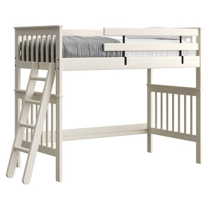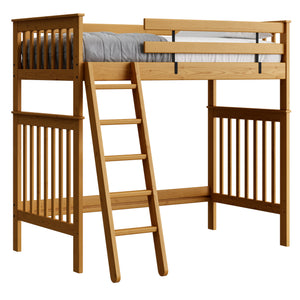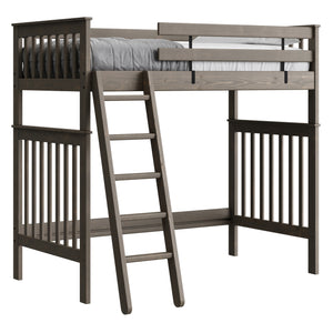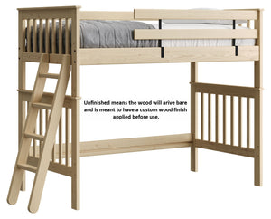 {"id":2170852474944,"title":"Mission Loft Bed. Twin Size.","handle":"mission-loft-bed-twin-size","description":"\u003cdiv class=\"so-accordion-wrapper\"\u003e\n\u003cdiv class=\"so-tab\" style=\"text-align: start;\"\u003e\n\u003cp\u003eLoft beds are bunk beds with the lower front rail and lower slats omitted. As a result loft beds will not be as rigid as a bunk bed. Expect them to have some movement.\u003c\/p\u003e\n\u003cp\u003eMission lofts include a removable ladder that can be used on the front or ends of the bed. A full length rear guardrail and a removable front guardrail are included.\u003cbr\u003eThe sturdy bed ends utilize \u003ca href=\"https:\/\/cdn.shopify.com\/s\/files\/1\/0128\/7661\/1648\/files\/Mortise_Tenon.jpg?v=1690230558\" title=\"Mortise and tenon\" target=\"_blank\"\u003emortise and tenon\u003c\/a\u003e construction and are all solid wood.\u003cbr\u003e\u003ca href=\"https:\/\/cdn.shopify.com\/s\/files\/1\/0128\/7661\/1648\/files\/Bunk-height.jpg?600\" title=\"Bunk bed height\" target=\"_blank\"\u003e\u003cimg alt=\"Bunk bed height\" src=\"https:\/\/cdn.shopify.com\/s\/files\/1\/0128\/7661\/1648\/files\/Bunk-bed-height_39c8b292-7094-48b1-95ac-85604632bb98.jpg?600\" style=\"margin-top: 10px; margin-bottom: 10px; float: start;\"\u003e\u003c\/a\u003e\u003c\/p\u003e\n\u003cp\u003eOptions include extra-long for big kids and a taller version to allow 8” more headroom under the bed, as shown in the image. Plenty of room for a desk and chest. The top of an 8” thick mattress will be 57” off the floor. (65” on Tall models) View \u003ca title=\"Mattresses\" href=\"\/collections\/mattresses\" target=\"_blank\"\u003emattress options\u003c\/a\u003e.\u003c\/p\u003e\n\u003c\/div\u003e\n\u003cdiv class=\"so-tab\"\u003e\n\u003cinput id=\"so-tab-1\" type=\"checkbox\" name=\"tabs\"\u003e \u003clabel for=\"so-tab-1\"\u003eDimensions\u003c\/label\u003e\n\u003cdiv class=\"so-tab-content\"\u003e\n\u003cp\u003e\u003cstrong\u003eTwin, regular:\u003c\/strong\u003e 43\" wide x 79\" deep x 65\" high. SKU: 4705A (Tall - 73\" high. SKU: 4705TA) \u003cspan style=\"color: #ffffff;\"\u003e4705\u003c\/span\u003e\u003cbr\u003e\u003cstrong\u003eTwin, extra-long:\u003c\/strong\u003e 43\" wide x 84\" deep x 65\" high. SKU: 4705AQ (Tall - 73\" high. SKU: 4705TAQ)\u003cbr\u003e\u003cspan data-mce-fragment=\"1\"\u003eThe ladder will extend 18\" from the front or end of the regular height loft bed and 20\" from the front or end of the tall model.\u003c\/span\u003e\u003cbr\u003e\u003c\/p\u003e\n\u003cp\u003e\u003cstrong\u003eClearance under the bed: \u003c\/strong\u003eRegular height - 46\", Tall - 54\"\u003c\/p\u003e\n\u003c\/div\u003e\n\u003c\/div\u003e\n\u003cdiv class=\"so-tab\"\u003e\n\u003cinput id=\"so-tab-2\" type=\"checkbox\" name=\"tabs\"\u003e \u003clabel for=\"so-tab-2\"\u003eMaterials\u003c\/label\u003e\n\u003cdiv class=\"so-tab-content\"\u003e\n\u003cp\u003e\u003cstrong\u003eFrame:\u003c\/strong\u003e Solid Southern Yellow Pine\u003cbr\u003e\u003cstrong\u003eMattress base:\u003c\/strong\u003e Solid Southern Yellow Pine slats (9) Foundation is not required\u003cbr\u003e\u003cstrong data-mce-fragment=\"1\"\u003eGuardrail \u0026amp; Ladder brackets:\u003c\/strong\u003e\u003cspan data-mce-fragment=\"1\"\u003e Powder coated steel\u003c\/span\u003e\u003cbr\u003e\u003c\/p\u003e\n\u003cp\u003eAssembly required. Click for \u003ca title=\"Assembly instructions\" href=\"https:\/\/cdn.shopify.com\/s\/files\/1\/0128\/7661\/1648\/files\/Mission_Bunk_Bed.pdf?v=1706197102\" rel=\"noopener noreferrer\" target=\"_blank\"\u003eAssembly Instructions\u003c\/a\u003e\u003c\/p\u003e\n\u003c\/div\u003e\n\u003c\/div\u003e\n\u003cdiv class=\"so-tab\"\u003e\n\u003cinput id=\"so-tab-3\" type=\"checkbox\" name=\"tabs\"\u003e \u003clabel for=\"so-tab-3\"\u003eWarranty\u003cbr\u003e\u003c\/label\u003e\n\u003cdiv class=\"so-tab-content\"\u003e\n\u003cp\u003eWe guarantee that our furniture will have gaps and cracks, but will not fall apart for as long as you own it! Shipping charges for replacement parts are included during your first year of ownership. Foam, fabric and mechanisms (non-wood parts) are guaranteed against faulty workmanship for a period of one year from the date of delivery. As most mills do not guarantee their fabric we will not be held responsible for wear or fading of our products’ fabric. This guarantee is limited to the original purchaser \u0026amp; also limited to furniture used indoors under normal residential conditions only. Your invoice is your proof of purchase. \u003ca href=\"\/pages\/about-us#guarantee\" title=\"Commercial warranty\" target=\"_blank\"\u003eView commercial warranty terms.\u003c\/a\u003e\u003c\/p\u003e\n\u003c\/div\u003e\n\u003cdiv class=\"so-tab\"\u003e\n\u003cinput name=\"tabs\" type=\"checkbox\" id=\"so-tab-4\"\u003e \u003clabel for=\"so-tab-4\"\u003eShipping\u003c\/label\u003e\n\u003cdiv class=\"so-tab-content\"\u003e\n\u003cp\u003eThis item \u003cspan data-mce-fragment=\"1\"\u003equalifies\u003c\/span\u003e for \u003cstrong\u003efree\u003c\/strong\u003e shipping! \u003ca title=\"Shipping policy\" href=\"https:\/\/cratedesignsfurniture.com\/policies\/shipping-policy\" target=\"_blank\"\u003eView our shipping rates and policies.\u003c\/a\u003e\u003cbr\u003eShipping is unavailable to Newfoundland \u0026amp; Labrador, Northwest Territories, Nunavut, the Yukon and outside of Canada. If you require shipping in any of these areas use the \u003ca rel=\"noopener\" title=\"Store Locator\" href=\"https:\/\/cratedesignsfurniture.com\/pages\/store-locator\" target=\"_blank\"\u003eStore Locator\u003c\/a\u003e to find the closest dealer that services your area.\u003cbr\u003e\u003c\/p\u003e\n\u003c\/div\u003e\n\u003c\/div\u003e\n\u003c\/div\u003e\n\u003c\/div\u003e","published_at":"2019-01-04T21:40:29-05:00","created_at":"2019-01-04T21:41:20-05:00","vendor":"Crate Designs Furniture","type":"Bunk beds","tags":["Bed size_Twin extra-long","Bed size_Twin size","Category_Default Category\/Fur