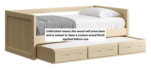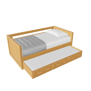 {"id":2639451291712,"title":"Panel Day Bed with Trundle. 29in High. Twin Size.","handle":"panel-day-bed-with-trundle-29in-high-twin-size","description":"\u003cdiv class=\"so-accordion-wrapper\"\u003e\n\u003cdiv class=\"so-tab\" style=\"text-align: start;\"\u003e\n\u003cp\u003eUse with the guardrail facing out as a first bed for your child. The set includes one \u003ca href=\"https:\/\/cratedesignsfurniture.com\/collections\/trundle-beds\/products\/trundle-bed-drawer\" title=\"4118-4218\" rel=\"noopener noreferrer\" target=\"_blank\"\u003etrundle bed\u003c\/a\u003e. The trundle unit can be placed on whichever side of the bed suits your room layout.\u003cbr\u003eThe trundle drawer rolls out easily on 4 casters. You can use it for convenient storage or as an extra bed. 2 dividers can be easily removed to accommodate a mattress. Maximum mattress size is 38\" wide x 8\" high x 73.5\" long (78.5\" long in the extra-long model).\u003cbr\u003eAll solid wood. Ready for a mattress, no foundation required. View \u003ca title=\"Mattresses\" href=\"\/collections\/mattresses\" target=\"_blank\"\u003emattress options\u003c\/a\u003e.\u003c\/p\u003e\n\u003c\/div\u003e\n\u003cdiv class=\"so-tab\"\u003e\n\u003cinput id=\"so-tab-1\" type=\"checkbox\" name=\"tabs\"\u003e \u003clabel for=\"so-tab-1\"\u003eDimensions\u003c\/label\u003e\n\u003cdiv class=\"so-tab-content\"\u003e\n\u003cp\u003e\u003cspan\u003e\u003cstrong\u003eTwin, regular:\u003c\/strong\u003e 43\" wide x 80\" deep x 29\" high. SKU: 4017\u003c\/span\u003e\u003cbr\u003e\u003cspan\u003e\u003cstrong\u003eTwin, extra-long:\u003c\/strong\u003e 43\" wide x 85\" deep x 29\" high. SKU: 4017Q\u003cbr\u003e\u003c\/span\u003e\u003cbr\u003e\u003cspan\u003e21 \" from the floor to the top of an 8 \" thick mattress.\u003c\/span\u003e\u003c\/p\u003e\n\u003c\/div\u003e\n\u003c\/div\u003e\n\u003cdiv class=\"so-tab\"\u003e\n\u003cinput id=\"so-tab-2\" type=\"checkbox\" name=\"tabs\"\u003e \u003clabel for=\"so-tab-2\"\u003eMaterials\u003c\/label\u003e\n\u003cdiv class=\"so-tab-content\"\u003e\n\u003cp\u003e\u003cstrong\u003eFrame:\u003c\/strong\u003e Solid Southern Yellow Pine\u003cbr\u003e\u003cstrong\u003eMattress base:\u003c\/strong\u003e Solid Southern Yellow Pine slats (9) Foundation is not required\u003cbr\u003e\u003c\/p\u003e\n\u003cp\u003eAssembly required. Click for \u003ca title=\"Assembly instructions\" href=\"https:\/\/cdn.shopify.com\/s\/files\/1\/0128\/7661\/1648\/files\/Bed_Assembly_-_Bolts.pdf?v=1706197102\" target=\"_blank\"\u003eAssembly Instructions\u003c\/a\u003e\u003c\/p\u003e\n\u003c\/div\u003e\n\u003c\/div\u003e\n\u003cdiv class=\"so-tab\"\u003e\n\u003cinput id=\"so-tab-3\" type=\"checkbox\" name=\"tabs\"\u003e\u003clabel for=\"so-tab-3\"\u003e Trundle Bed Dimensions\u003c\/label\u003e\n\u003cdiv class=\"so-tab-content\"\u003e\n\u003cp\u003e\u003cstrong\u003eTwin, regular:\u003c\/strong\u003e 74\" wide x 41\" deep x 9\" high. SKU: 4118\u003cbr\u003e\u003cstrong\u003eTwin, extra-long:\u003c\/strong\u003e 79\" wide x 41\" deep x 9\" high. SKU: 4218\u003c\/p\u003e\n\u003c\/div\u003e\n\u003cdiv class=\"so-tab\"\u003e\n\u003cinput id=\"so-tab-4\" type=\"checkbox\" name=\"tabs\"\u003e\u003clabel for=\"so-tab-4\"\u003eTrundle Bed Materials\u003c\/label\u003e\n\u003cdiv class=\"so-tab-content\"\u003e\n\u003cp\u003e\u003cstrong\u003eCase:\u003c\/strong\u003e Solid Southern Yellow Pine\u003cbr\u003e\u003cstrong\u003ePlatform base:\u003c\/strong\u003e Engineered wood.\u003c\/p\u003e\n\u003cp\u003eNo assembly required except adding casters.\u003c\/p\u003e\n\u003c\/div\u003e\n\u003cdiv class=\"so-tab\"\u003e\n\u003cinput id=\"so-tab-5\" type=\"checkbox\" name=\"tabs\"\u003e \u003clabel for=\"so-tab-5\"\u003eWarranty\u003cbr\u003e\u003c\/label\u003e\n\u003cdiv class=\"so-tab-content\"\u003e\n\u003cp\u003eWe guarantee that our furniture will have gaps and cracks, but will not fall apart for as long as you own it! Shipping charges for replacement parts are included during your first year of ownership. Foam, fabric and mechanisms (non-wood parts) are guaranteed against faulty workmanship for a period of one year from the date of delivery. As most mills do not guarantee their fabric we will not be held responsible for wear or fading of our products’ fabric. This guarantee is limited to the original purchaser \u0026amp; also limited to furniture used indoors under normal residential conditions only. Your invoice is your proof of purchase. \u003ca href=\"\/pages\/about-us#guarantee\" title=\"Commercial warranty\" target=\"_blank\"\u003eView commercial warranty terms\u003c\/a\u003e.\u003c\/p\u003e\n\u003c\/div\u003e\n\u003cdiv class=\"so-tab\"\u003e\n\u003cinput id=\"so-tab-6\" type=\"checkbox\" name=\"tabs\"\u003e \u003clabel for=\"so-tab-6\"\u003eShipping\u003c\/label\u003e\n\u003cdiv class=\"so-tab-content\"\u003e\n\u003cp\u003eThis item \u003cspan data-mce-fragment=\"1\"\u003equalifies\u003c\/span\u003e for \u003cstrong\u003efree\u003c\/strong\u003e shipping! \u003ca title=\"Shipping policy\" href=\"https:\/\/cratedesignsfurniture.com\/policies\/shipping-policy\" target=\"_blank\"\u003eView our shipping rates and policies.\u003c\/a\u003e\u003cbr\u003eShipping is unavailable to Newfoundland \u0026amp; Labrador, Northwest Territories, Nunavut, the Yukon and outside of Canada. If you require shipping in any of these areas use the \u003ca rel=\"noopener\" title=\"Store Locator\" href=\"https:\/\/cratedesignsfurniture.com\/pages\/store-locator\" target=\"_blank\"\u003eStore Locator\u003c\/a\u003e to find the closest dealer that services your area.\u003c\/p\u003e\n\u003c\/div\u003e\n\u003c\/div\u003e\n\u003c\/div\u003e\n\u003c\/div\u003e\n\u003c\/div\u003e\n\u003c\/div\u003e","published_at":"2019-01-26T12:37:57-05:00","created_at":"2019-01-26T12:38:03-05:00","vendor":"Crate Designs Furniture","type":"Bed","tags":["Bed size_Twin extra-long","Bed size_Twin size","Category_Default Category\/Furniture","Category_Default Category\/Furniture\/Bedroom","Category_Default