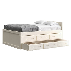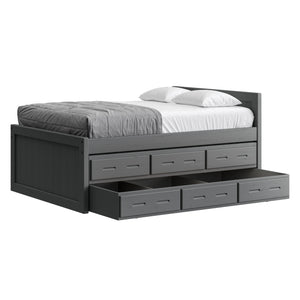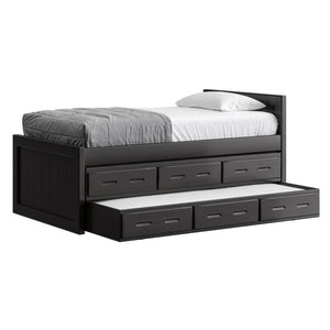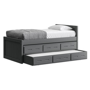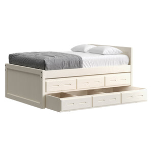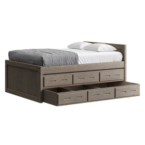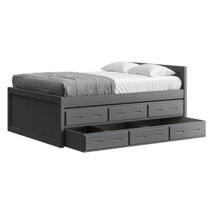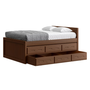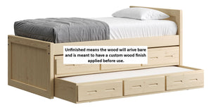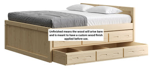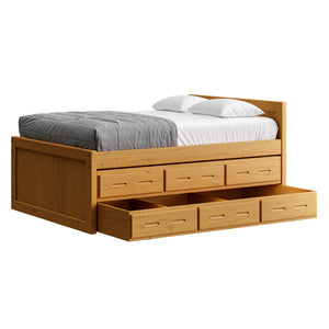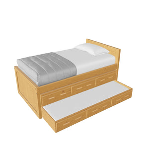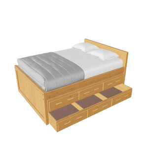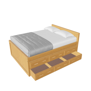 {"id":8075419320558,"title":"Captain's Bed, 39in HB, 26in FB, with Drawers and Trundle Bed. Sizes up to King","handle":"captains-bed-39in-hb-26in-fb-with-drawers-and-trundle-bed-twin-full-queen-king","description":"\u003cdiv class=\"so-accordion-wrapper\"\u003e\n\u003cdiv class=\"so-tab\" style=\"text-align: start;\"\u003e\n\u003cp\u003eThe bed is available in all sizes. The set includes one \u003ca title=\"4019A-4919A\" href=\"\/products\/4019a\" target=\"_blank\"\u003e3 drawer unit\u003c\/a\u003e and one \u003ca href=\"https:\/\/cratedesignsfurniture.com\/collections\/trundle-beds\/products\/trundle-bed-drawer\" title=\"4118-4218\" target=\"_blank\"\u003etrundle bed\u003c\/a\u003e. The drawer and trundle unit can be placed on whichever side of the bed suits your room layout.\u003cbr\u003e\u003c\/p\u003e\n\u003cp\u003eThe trundle drawer rolls out easily on 4 casters. You can use it for convenient storage or as an extra bed. 2 dividers can be easily removed to accommodate a mattress. Maximum mattress size is 38\" wide x 8\" high x 73.5\" long (78.5\" long in the extra-long model).\u003cbr\u003eOur solid wood drawer boxes feature \u003ca href=\"https:\/\/cdn.shopify.com\/s\/files\/1\/0128\/7661\/1648\/files\/Drawer_detail.jpg?v=1690310119\" title=\"Drawer detail\" target=\"_blank\"\u003edovetailed\u003c\/a\u003e corner joints and roll easily on steel and nylon drawer runners. Drawer bottoms are secured in a groove on all 4 sides - the bottom will never fall out of your CD Furniture drawer.\u003cbr\u003eThe drawer unit and trundle bed are sized to match the bed length (regular or extra-long) that you choose. Both beds are ready for mattresses, no foundation required. View \u003ca title=\"Mattresses\" href=\"\/collections\/mattresses\" target=\"_blank\"\u003emattress options\u003c\/a\u003e.\u003c\/p\u003e\n\u003c\/div\u003e\n\u003cdiv class=\"so-tab\"\u003e\n\u003cinput id=\"so-tab-1\" type=\"checkbox\" name=\"tabs\"\u003e \u003clabel for=\"so-tab-1\"\u003eBed Dimensions\u003c\/label\u003e\n\u003cdiv class=\"so-tab-content\"\u003e\n\u003cp\u003e\u003cstrong\u003eTwin, regular:\u003c\/strong\u003e 43\" wide x 80\" deep x 39\" high. Footboard 26\" high. SKU: 4011\u003cbr\u003e\u003cstrong\u003eTwin, extra-long:\u003c\/strong\u003e 43\" wide x 85\" deep x 39\" high. Footboard 26\" high. SKU: 4011Q\u003cbr\u003e\u003cstrong data-mce-fragment=\"1\"\u003eFull, regular:\u003c\/strong\u003e 58\" wide x 80\" deep x 39\" high. Footboard 26\" high. SKU: 4411\u003cbr data-mce-fragment=\"1\"\u003e\u003cstrong data-mce-fragment=\"1\"\u003eFull, extra-long:\u003c\/strong\u003e 58\" wide x 85\" deep x 39\" high. Footboard 26\" high. SKU: 4411Q\u003cbr\u003e\u003cstrong\u003eQueen:\u003c\/strong\u003e 64\" wide x 85\" deep x 39\" high. Footboard 26\" high. SKU: 4511\u003cbr\u003e\u003cstrong data-mce-fragment=\"1\"\u003eKing:\u003c\/strong\u003e 80\" wide x 85\" deep x 39\" high. Footboard 26\" high. SKU: 4611\u003cbr\u003e\u003c\/p\u003e\n\u003cp\u003e31” from the floor to the top of an 8” thick mattress.\u003c\/p\u003e\n\u003c\/div\u003e\n\u003c\/div\u003e\n\u003cdiv class=\"so-tab\"\u003e\n\u003cinput id=\"so-tab-2\" type=\"checkbox\" name=\"tabs\"\u003e \u003clabel for=\"so-tab-2\"\u003eBed Materials\u003c\/label\u003e\n\u003cdiv class=\"so-tab-content\"\u003e\n\u003cp\u003e\u003cstrong\u003eFrame:\u003c\/strong\u003e Solid Southern Yellow Pine\u003cbr\u003e\u003cstrong\u003eMattress base:\u003c\/strong\u003e Solid Southern Yellow Pine slats (9) Foundation is not required.\u003c\/p\u003e\n\u003cp\u003eAssembly required. Click for \u003ca title=\"Assembly instructions\" href=\"https:\/\/cdn.shopify.com\/s\/files\/1\/0128\/7661\/1648\/files\/Captains_bed.pdf?v=1706197102\" target=\"_blank\"\u003eAssembly Instructions\u003c\/a\u003e.\u003c\/p\u003e\n\u003c\/div\u003e\n\u003c\/div\u003e\n\u003cdiv class=\"so-tab\"\u003e\n\u003cinput id=\"so-tab-3\" type=\"checkbox\" name=\"tabs\"\u003e \u003clabel for=\"so-tab-3\"\u003eDrawer Unit Dimensions\u003cbr\u003e\u003c\/label\u003e\n\u003cdiv class=\"so-tab-content\"\u003e\n\u003cp\u003e\u003cstrong\u003eRegular:\u003c\/strong\u003e 74\" wide x 20\" deep x 9\" high. SKU: 4019A\u003cbr\u003e\u003cstrong\u003eDrawer openings:\u003c\/strong\u003e 20 1\/2\" wide x 16 1\/2\" deep x 5 1\/2\" high\u003c\/p\u003e\n\u003cp\u003e\u003cstrong\u003eExtra-long:\u003c\/strong\u003e 79\" wide x 20\" deep x 9\" high. SKU: 4919A\u003cbr\u003e\u003cstrong\u003eDrawer openings:\u003c\/strong\u003e 22 1\/4\" wide x 16 1\/2\" deep x 5 1\/2\" high\u003c\/p\u003e\n\u003c\/div\u003e\n\u003cdiv class=\"so-tab\"\u003e\n\u003cinput id=\"so-tab-4\" type=\"checkbox\" name=\"tabs\"\u003e \u003clabel for=\"so-tab-4\"\u003eDrawer Unit Materials\u003cbr\u003e\u003c\/label\u003e\n\u003cdiv class=\"so-tab-content\"\u003e\n\u003cp\u003e\u003cspan\u003e\u003cstrong\u003eCase:\u003c\/strong\u003e Solid Southern Yellow Pine\u003c\/span\u003e\u003cbr\u003e\u003cspan\u003e\u003cstrong\u003eTop:\u003c\/strong\u003e Plywood\u003c\/span\u003e\u003cbr\u003e\u003cspan\u003e\u003cstrong\u003eDrawer bottoms:\u003c\/strong\u003e Plywood\u003c\/span\u003e\u003cbr\u003e\u003cspan\u003e\u003cstrong\u003eBack:\u003c\/strong\u003e Plywood\u003c\/span\u003e\u003c\/p\u003e\n\u003cp\u003e\u003cspan\u003eNo assembly required.\u003c\/span\u003e\u003c\/p\u003e\n\u003c\/div\u003e\n\u003cdiv class=\"so-tab\"\u003e\n\u003cinput id=\"so-tab-5\" type=\"checkbox\" name=\"tabs\"\u003e\u003clabel for=\"so-tab-5\"\u003e Trundle Bed Dimensions\u003c\/label\u003e\n\u003cdiv class=\"so-tab-content\"\u003e\n\u003cp\u003e\u003cstrong\u003eTwin, regular:\u003c\/strong\u003e 74\" wide x 41\" deep x 9\" high. SKU: 4118\u003cbr\u003e\u003cstrong\u003eTwin, extra-long:\u003c\/strong\u003e 79\" wide x 41\" deep x 9\" high. SKU: 4218\u003c\/p\u003e\n\u003c\/div\u003e\n\u003cdiv class=\"so-tab\"\u003e\n\u003cinput id=\"so-tab-6\" type=\"checkbox\" name=\"tabs\"\u003e\u003clabel for=\"so-tab-6\"\u003eTrundle Bed Materials\u003c\/label\u003e\n