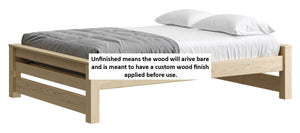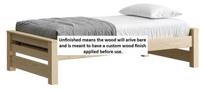 {"id":8074096541934,"title":"TimberFrame Low Profile Bed. Sizes up to Queen","handle":"timberframe-low-profile-bed-twin-full-queen","description":"\u003cdiv class=\"so-accordion-wrapper\"\u003e\n\u003cdiv style=\"text-align: start;\" class=\"so-tab\"\u003e\n\u003cp\u003eTimberFrame beds feature massive corner posts with thick horizontal rails using \u003ca title=\"Mortise and tenon\" href=\"https:\/\/cdn.shopify.com\/s\/files\/1\/0128\/7661\/1648\/files\/Mortise_Tenon.jpg?v=1690230558\" target=\"_blank\"\u003emortise and tenon\u003c\/a\u003e construction. All solid wood, available in twin, full and queen sizes. \u003cspan\u003eAdd optional drawers or a trundle bed for maximum use of your floor space.\u003c\/span\u003e\u003cspan\u003e \u003c\/span\u003e\u003ca title=\"Underbed storage\" href=\"https:\/\/cratedesignsfurniture.com\/collections\/under-bed-storage\" target=\"_blank\"\u003eView underbed options\u003c\/a\u003e\u003cspan\u003e.\u003c\/span\u003e\u003c\/p\u003e\n\u003cp\u003e\u003cspan\u003eReady for a mattress, no foundation required. \u003c\/span\u003e\u003ca title=\"Mattresses\" href=\"https:\/\/cratedesignsfurniture.com\/collections\/mattresses\" target=\"_blank\"\u003eView mattress options\u003c\/a\u003e\u003cspan\u003e.\u003c\/span\u003e\u003c\/p\u003e\n\u003c\/div\u003e\n\u003cdiv class=\"so-tab\"\u003e\n\u003cinput name=\"tabs\" type=\"checkbox\" id=\"so-tab-1\"\u003e \u003clabel for=\"so-tab-1\"\u003eDimensions\u003c\/label\u003e\n\u003cdiv class=\"so-tab-content\"\u003e\n\u003cp\u003e\u003cstrong\u003eTwin, regular:\u003c\/strong\u003e 44\" wide x 82\" deep x 19\" high. SKU: 43988\u003cbr\u003e\u003cstrong\u003eTwin, extra-long:\u003c\/strong\u003e 44\" wide x 87\" deep x 19\" high. SKU: 43988Q\u003cbr\u003e\u003cstrong data-mce-fragment=\"1\"\u003eFull, regular:\u003c\/strong\u003e 59\" wide x 82\" deep x 19\" high. SKU: 44988\u003cbr data-mce-fragment=\"1\"\u003e\u003cstrong data-mce-fragment=\"1\"\u003eFull, extra-long:\u003c\/strong\u003e 59\" wide x 87\" deep x 19\" high. SKU: 44988Q\u003cbr\u003e\u003cstrong data-mce-fragment=\"1\"\u003eQueen:\u003c\/strong\u003e 65\" wide x 87\" deep x 19\" high. SKU: 45988\u003cbr\u003e\u003c\/p\u003e\n\u003cp\u003e21” from the floor to the top of an 8” thick mattress.\u003c\/p\u003e\n\u003c\/div\u003e\n\u003c\/div\u003e\n\u003cdiv class=\"so-tab\"\u003e\n\u003cinput name=\"tabs\" type=\"checkbox\" id=\"so-tab-2\"\u003e \u003clabel for=\"so-tab-2\"\u003eMaterials\u003c\/label\u003e\n\u003cdiv class=\"so-tab-content\"\u003e\n\u003cp\u003e\u003cstrong\u003eFrame:\u003c\/strong\u003e Solid Southern Yellow Pine\u003cbr\u003e\u003cstrong\u003eMattress base:\u003c\/strong\u003e Solid Southern Yellow Pine slats (9) Foundation is not required\u003cbr\u003e\u003c\/p\u003e\n\u003cp\u003eAssembly required. Click for \u003ca rel=\"noopener noreferrer\" href=\"https:\/\/cdn.shopify.com\/s\/files\/1\/0128\/7661\/1648\/files\/Bed_Assembly_-_Brackets.pdf?v=1706197102\" title=\"Assembly instructions\" target=\"_blank\"\u003eAssembly Instructions\u003c\/a\u003e\u003c\/p\u003e\n\u003c\/div\u003e\n\u003c\/div\u003e\n\u003cdiv class=\"so-tab\"\u003e\n\u003cinput name=\"tabs\" type=\"checkbox\" id=\"so-tab-3\"\u003e \u003clabel for=\"so-tab-3\"\u003eWarranty\u003cbr\u003e\u003c\/label\u003e\n\u003cdiv class=\"so-tab-content\"\u003e\n\u003cp\u003eWe guarantee that our furniture will have gaps and cracks, but will not fall apart for as long as you own it! Shipping charges for replacement parts are included during your first year of ownership. Foam, fabric and mechanisms (non-wood parts) are guaranteed against faulty workmanship for a period of one year from the date of delivery. As most mills do not guarantee their fabric we will not be held responsible for wear or fading of our products’ fabric. This guarantee is limited to the original purchaser \u0026amp; also limited to furniture used indoors under normal residential conditions only. Your invoice is your proof of purchase. \u003ca title=\"Commercial warranty\" href=\"\/pages\/about-us#guarantee\" target=\"_blank\"\u003eView commercial warranty terms.\u003c\/a\u003e\u003c\/p\u003e\n\u003c\/div\u003e\n\u003cdiv class=\"so-tab\"\u003e\n\u003cinput id=\"so-tab-4\" type=\"checkbox\" name=\"tabs\"\u003e \u003clabel for=\"so-tab-4\"\u003eShipping\u003c\/label\u003e\n\u003cdiv class=\"so-tab-content\"\u003e\n\u003cp\u003eThis item \u003cspan data-mce-fragment=\"1\"\u003equalifies\u003c\/span\u003e for \u003cstrong\u003efree\u003c\/strong\u003e shipping! \u003ca href=\"https:\/\/cratedesignsfurniture.com\/policies\/shipping-policy\" title=\"Shipping policy\" target=\"_blank\"\u003eView our shipping rates and policies.\u003c\/a\u003e\u003cbr\u003eShipping is unavailable to Newfoundland \u0026amp; Labrador, Northwest Territories, Nunavut, the Yukon and outside of Canada. If you require shipping in any of these areas use the \u003ca rel=\"noopener\" title=\"Store Locator\" href=\"https:\/\/cratedesignsfurniture.com\/pages\/store-locator\" target=\"_blank\"\u003eStore Locator\u003c\/a\u003e to find the closest dealer that services your area.\u003cbr\u003e\u003c\/p\u003e\n\u003c\/div\u003e\n\u003c\/div\u003e\n\u003c\/div\u003e\n\u003c\/div\u003e","published_at":"2023-06-02T14:45:52-04:00","created_at":"2023-06-02T13:44:19-04:00","vendor":"Crate Designs Furniture","type":"Bed","tags":["Bed size_Full extra-long","Bed size_Full size","Bed size_Queen size","Bed size_Twin extra-long","Bed size_Twin size","Category_Default Category\/Furniture","Category_Default Category\/Furniture\/Bedroom","Category_Default Category\/Furniture\/Bedroom\/Beds","Category_Default Category\/Furniture\/Bedroom\/Beds\/TimberFrame Beds","Headboard height_16\"-22\"","Store_default"],"price":73600,"price_min":73600,"price_max":124700,"available":true,"price_varies":true,"compare_at_price":null,"compare_at_price_min":0,"compare_at_price_max":0,"compare_at_price_varies":false,"variants":[{"id":44187061813486,"title":"Twin \/ Classic","opt