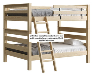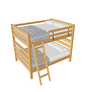 {"id":2170428260416,"title":"TimberFrame Bunk Bed. Queen Over Queen With Ladder.","handle":"timberframe-bunk-bed-queen-over-queen-with-ladder","description":"\u003cdiv class=\"so-accordion-wrapper\"\u003e\n\u003cdiv class=\"so-tab\" style=\"text-align: start;\"\u003e\n\u003cp\u003eTimberFrame bunk beds feature massive corner posts with thick ladder rungs in between using \u003ca href=\"https:\/\/cdn.shopify.com\/s\/files\/1\/0128\/7661\/1648\/files\/Mortise_Tenon.jpg?v=1690230558\" title=\"Mortise and tenon\" target=\"_blank\"\u003emortise and tenon\u003c\/a\u003e construction. A ladder is included with this model as well as a removable guardrail on the front and a full-length guardrail at the rear of the upper bed. Can be separated into 2 beds.\u003cbr\u003e\u003cbr\u003eAdd optional drawers or a trundle bed for maximum use of your floor space. \u003ca href=\"https:\/\/cratedesignsfurniture.com\/collections\/under-bed-storage\" title=\"Underbed storage\" target=\"_blank\"\u003eView underbed options\u003c\/a\u003e.\u003cbr\u003e\u003c\/p\u003e\n\u003cp\u003e\u003cspan\u003eReady for a mattress, no foundation required. \u003c\/span\u003e\u003cspan\u003eThe top of an 8” thick mattress on the lower bed will be 21” and on the upper bed will be 64” off the floor. View \u003c\/span\u003e\u003ca title=\"Mattresses\" href=\"https:\/\/cratedesigns.myshopify.com\/collections\/mattresses\" target=\"_blank\"\u003emattress options\u003c\/a\u003e\u003cspan\u003e.\u003c\/span\u003e\u003c\/p\u003e\n\u003c\/div\u003e\n\u003cdiv class=\"so-tab\"\u003e\n\u003cinput id=\"so-tab-1\" type=\"checkbox\" name=\"tabs\"\u003e \u003clabel for=\"so-tab-1\"\u003eDimensions\u003c\/label\u003e\n\u003cdiv class=\"so-tab-content\"\u003e\n\u003cp\u003e\u003cstrong\u003eQueen: \u003c\/strong\u003e65\" wide x 87\" deep x 72\" high. SKU: 45908H \u003cbr\u003eThe ladder will extend 20\" from the front of the bunk bed.\u003cspan style=\"color: #ffffff;\"\u003e45908\u003c\/span\u003e\u003c\/p\u003e\n\u003c\/div\u003e\n\u003c\/div\u003e\n\u003cdiv class=\"so-tab\"\u003e\n\u003cinput id=\"so-tab-2\" type=\"checkbox\" name=\"tabs\"\u003e \u003clabel for=\"so-tab-2\"\u003eMaterials\u003c\/label\u003e\n\u003cdiv class=\"so-tab-content\"\u003e\n\u003cp\u003e\u003cstrong\u003eFrame:\u003c\/strong\u003e Solid Southern Yellow Pine\u003cbr\u003e\u003cstrong\u003eMattress base:\u003c\/strong\u003e Solid Southern Yellow Pine slats (9) Foundation is not required\u003cbr\u003e\u003cstrong data-mce-fragment=\"1\"\u003eGuardrail \u0026amp; Ladder brackets:\u003c\/strong\u003e\u003cspan data-mce-fragment=\"1\"\u003e Powder coated steel\u003c\/span\u003e\u003cbr\u003e\u003c\/p\u003e\n\u003cp\u003eAssembly required. Click for \u003ca title=\"Assembly instructions\" href=\"https:\/\/cdn.shopify.com\/s\/files\/1\/0128\/7661\/1648\/files\/TimberFrame_bunk_bed.pdf?v=1706204785\" rel=\"noopener noreferrer\" target=\"_blank\"\u003eAssembly Instructions\u003c\/a\u003e\u003c\/p\u003e\n\u003c\/div\u003e\n\u003c\/div\u003e\n\u003cdiv class=\"so-tab\"\u003e\n\u003cinput id=\"so-tab-3\" type=\"checkbox\" name=\"tabs\"\u003e \u003clabel for=\"so-tab-3\"\u003eWarranty\u003cbr\u003e\u003c\/label\u003e\n\u003cdiv class=\"so-tab-content\"\u003e\n\u003cp\u003eWe guarantee that our furniture will have gaps and cracks, but will not fall apart for as long as you own it! Shipping charges for replacement parts are included during your first year of ownership. Foam, fabric and mechanisms (non-wood parts) are guaranteed against faulty workmanship for a period of one year from the date of delivery. As most mills do not guarantee their fabric we will not be held responsible for wear or fading of our products’ fabric. This guarantee is limited to the original purchaser \u0026amp; also limited to furniture used indoors under normal residential conditions only. Your invoice is your proof of purchase. \u003ca href=\"\/pages\/about-us#guarantee\" title=\"Commercial warranty\" target=\"_blank\"\u003eView commercial warranty terms.\u003c\/a\u003e\u003c\/p\u003e\n\u003c\/div\u003e\n\u003cdiv class=\"so-tab\"\u003e\n\u003cinput name=\"tabs\" type=\"checkbox\" id=\"so-tab-4\"\u003e \u003clabel for=\"so-tab-4\"\u003eShipping\u003c\/label\u003e\n\u003cdiv class=\"so-tab-content\"\u003e\n\u003cp\u003eThis item \u003cspan data-mce-fragment=\"1\"\u003equalifies\u003c\/span\u003e for \u003cstrong\u003efree\u003c\/strong\u003e shipping! \u003ca title=\"Shipping policy\" href=\"https:\/\/cratedesignsfurniture.com\/policies\/shipping-policy\" target=\"_blank\"\u003eView our shipping rates and policies.\u003c\/a\u003e\u003cbr\u003eShipping is unavailable to Newfoundland \u0026amp; Labrador, Northwest Territories, Nunavut, the Yukon and outside of Canada. If you require shipping in any of these areas use the \u003ca rel=\"noopener\" title=\"Store Locator\" href=\"https:\/\/cratedesignsfurniture.com\/pages\/store-locator\" target=\"_blank\"\u003eStore Locator\u003c\/a\u003e to find the closest dealer that services your area.\u003cbr\u003e\u003c\/p\u003e\n\u003c\/div\u003e\n\u003c\/div\u003e\n\u003c\/div\u003e\n\u003c\/div\u003e","published_at":"2019-01-04T20:54:17-05:00","created_at":"2019-01-04T20:55:04-05:00","vendor":"Crate Designs Furniture","type":"Bunk beds","tags":["Bed size_Queen over queen","Bed size_Queen size","Category_Default Category\/Furniture","Category_Default Category\/Furniture\/Bedroom\/Bunk Beds","Category_Default Category\/Furniture\/Bedroom\/Bunk Beds\/TimberFrame Bunk Beds"],"price":295600,"price_min":295600,"price_max":339700,"available":true,"price_varies":true,"compare_at_price":null,"compare_at_price_min":0,"compare_at_price_max":0,"compare_at_price_varies":false,"variants":[{"id":20544962068544,"title":"Classic","option1":"Classic","option2":null,"option3":null,"sku":"A45908H","requires_shipping":true,"taxable":true,"featured_image":{"id":39123292356846,"product_id":2170428260416,"position":1,"created_at":"2023-05-09T19:21:52-04:00","updated_at":"2023-05-09T