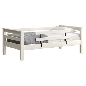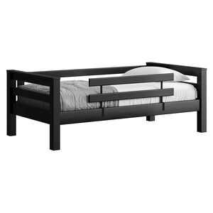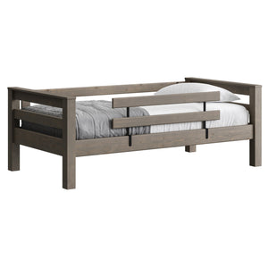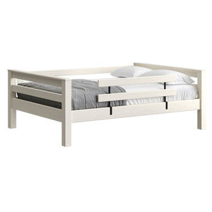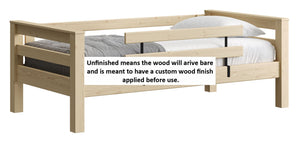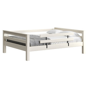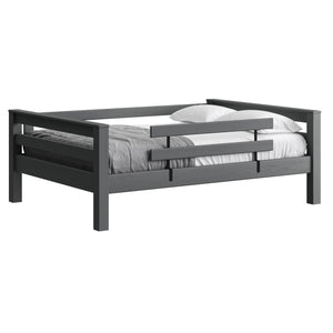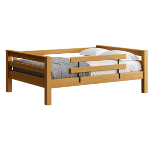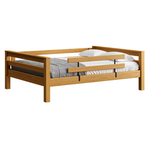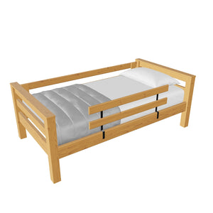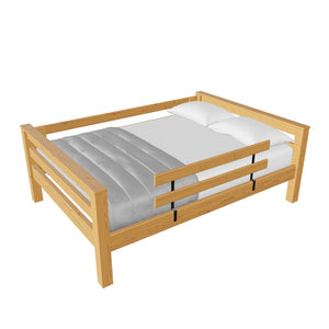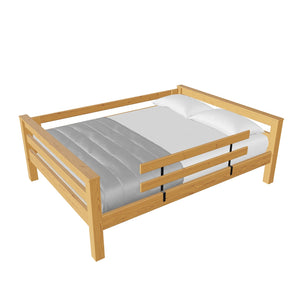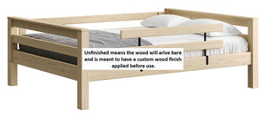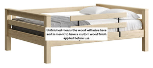 A great starter bed for your child. 100% solid wood and available in twin, full and queen sizes. Add the lower bed when your child is ready for more fun or you need more beds! TimberFrame bunk beds feature massive corner posts with thick ladder rungs in between using mortise and tenon construction. The sturdy, wide ladder ends make it easy for kids to climb up and down. A removable guardrail is included on the front with a full-length guardrail at the rear of the upper bed. Options include extra-long for big kids. Add optional drawers or a trundle bed for maximum use of your floor space. View underbed options.