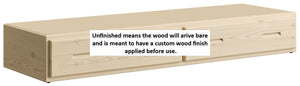 Drawer units fit under all CD beds, and you can place one on each side of all bed sizes. This model is designed for use with a night table. Drawer boxes feature dovetailed corner joints and roll easily on steel and nylon drawer runners. Drawer bottoms are secured in a groove in the solid wood drawer box, so the bottom will never fall out of your CD Furniture drawer.